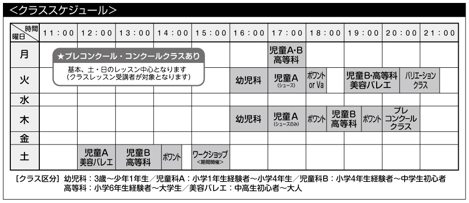 - ポワントクラス・バリエーションクラス・プレコンクールクラスのみの受講はできません。